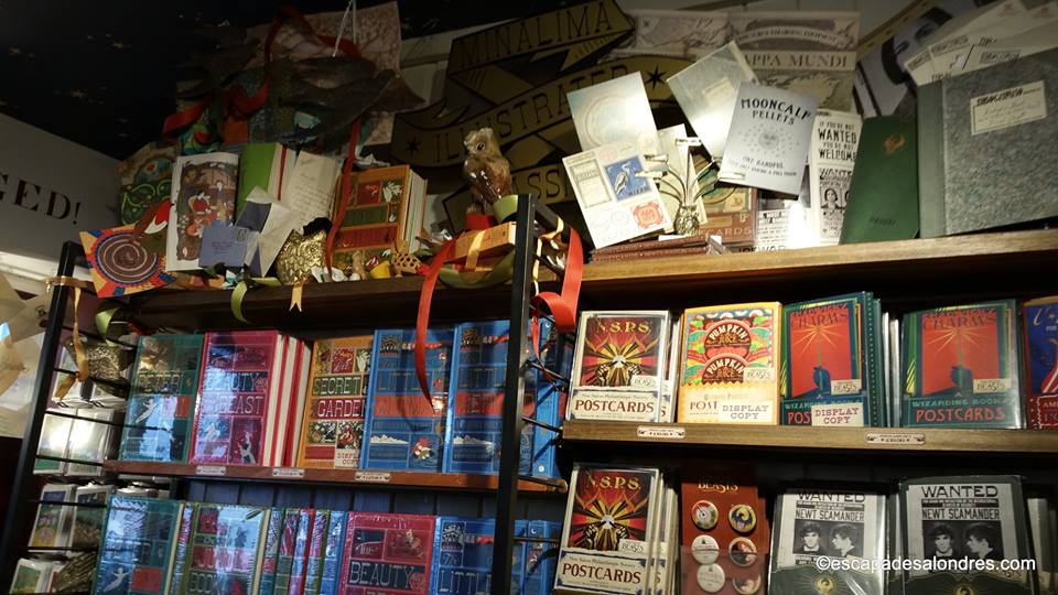 Et enfin, pour finir, tous les objets d'art graphique exposés aux étages supérieurs peuvent être achetés dans la boutique House of MinaLima située au Rez-de-chaussée : on y trouve des affiches en édition limitée des films Harry Potter , de la papeterie, des carnets de notes, des livres et même la possibilité de s'offrir une lettre d'acceptation de Poudlard avec le sceau de cire rouge et l'écriture luxueuse en italique de Dumbledore, ...la petite boutique est pleine à craquer d'imprimés et de marchandises autours de Harry Potter , et on ne sait plus où poser son regard...les prix pourront vous paraître cher, mais ce sont des tirages en édition limitée