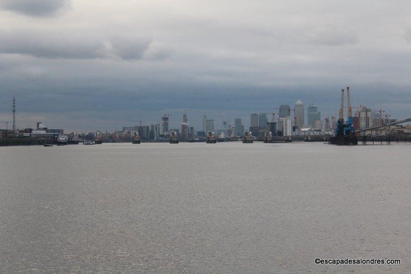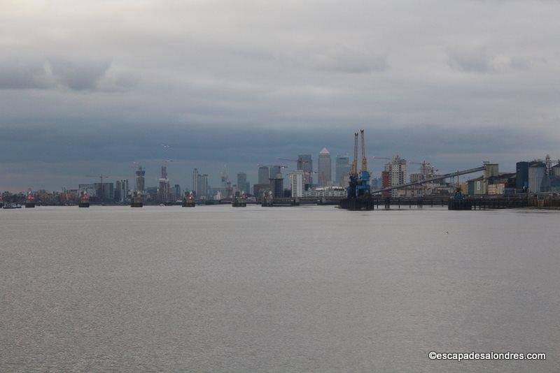 Bien que le voyage soit court, le paysage nous offre quand même une vue sur les tours de Canary Wharf, la salle de spectacle The O2 Arena et les barrières de la Tamises - A l'arrivée, tout le monde doit descendre du ferry, même si en tant que piéton, vous souhaitez effectuer le retour tout de suite.