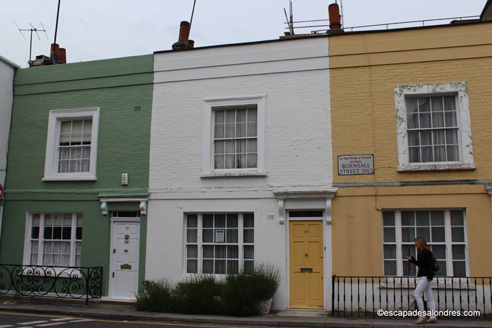 Continuez ensuite la balade vers l'ouest sur King's Road jusqu'à Burnsall Street, les maisons de cette rue sont un arc-en-ciel de couleur jaune canari, lilas, bleu azur; elles s'alignent dans une harmonie parfaite, avec des portes tout aussi originales les unes des autres.
