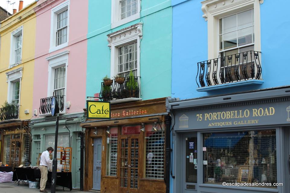Ensuite il y'a Portobello Road, sans doute la rue la plus célèbre de Notting Hill où se tient tous les jours, excepté les dimanches, Portobello Road Market; le marché d'antiquité le plus populaire de la ville....les vendredi et les samedi étant les jours de plus fortes affluence, où il accueille pas moins de 1000 commerçants, avec tout un tas de petites boutiques pleines de charmes ; des librairies, des magasins d' antiquités, de bric et de brocs bordent la rue, toutes avec des façades peintes dans de belles couleurs chatoyantes.